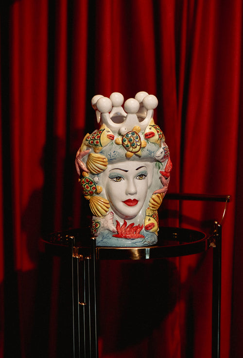 This glass horse head sculpture showcases a detailed mane finished in bold teal and gold. Its smooth textures and vibrant colour contrasts give it ...