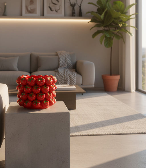 مزهرية توميتو سيراميك حمراء صغيرة بنقوش طماطم