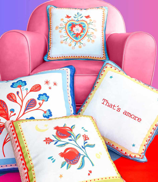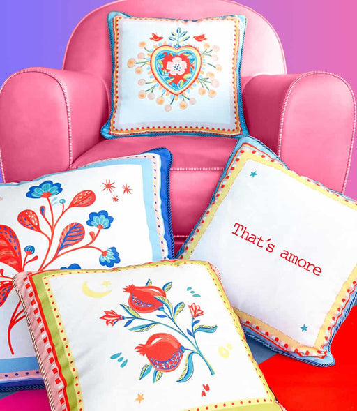 وسادة ماما ميا بوليستر برسمة قلب ملوّنة - 45×45 سم