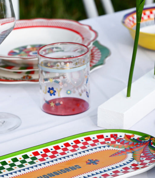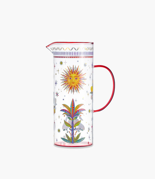 إبريق دولتشي فيتا زجاج شفاف برسوم ملوّنة ومقبض أحمر