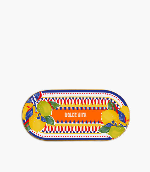 صينية بيضاوية دولتشي فيتا بورسلين ملوّنة برسمة ليمون