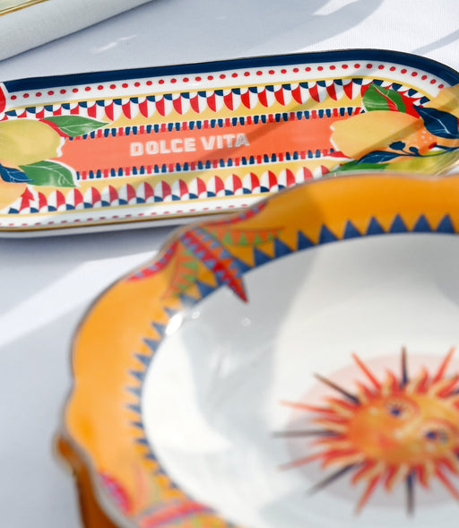 صحن دولتشي فيتا بورسلين ملوّن برسمة شمس