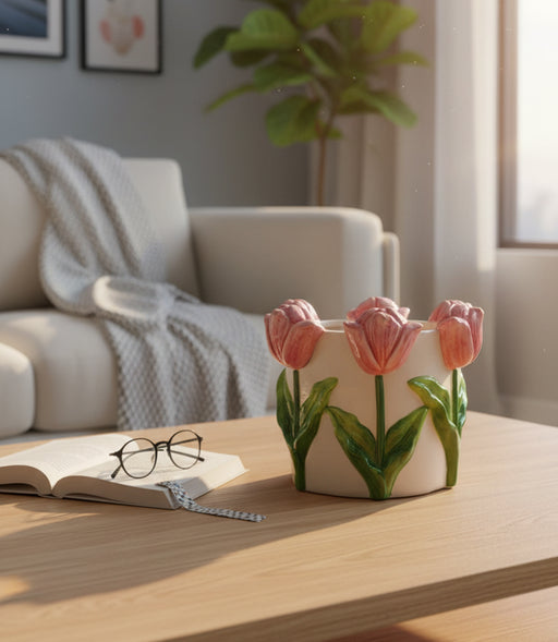 مزهرية تكستشرد تريجرز ريزن حمراء بنقوش ريش