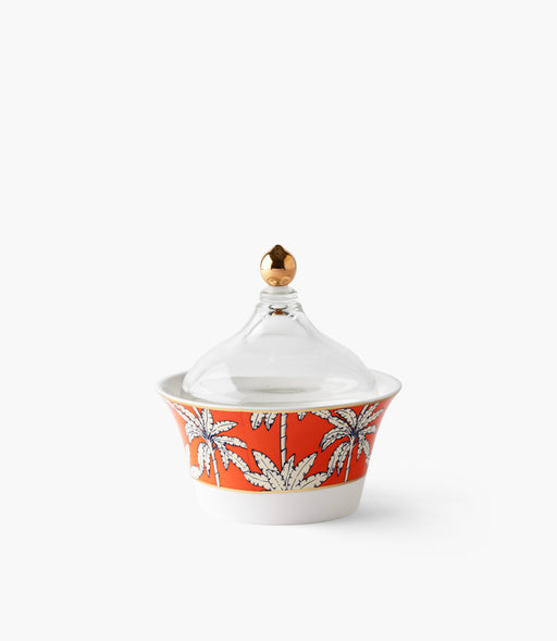 سكّرية أورنج بالم بورسلين برتقالية برسوم نخيل مع ملعقة وغطاء