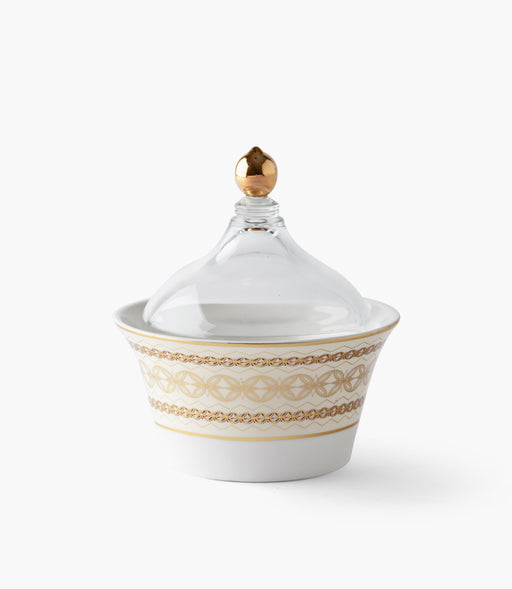 سلطانية تمر مرايا بيرل بورسلين بنقوش هندسية مع غطاء