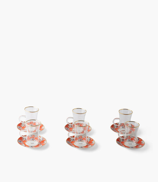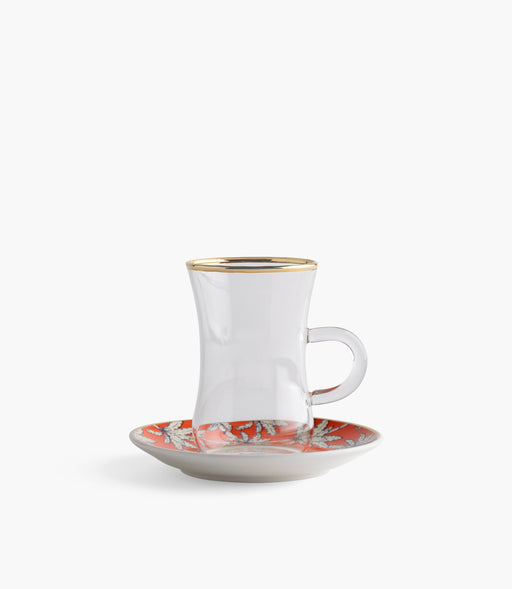 طقم فناجين شاي أورنج بالم زجاج مع صحون بورسلين - عدد 12
