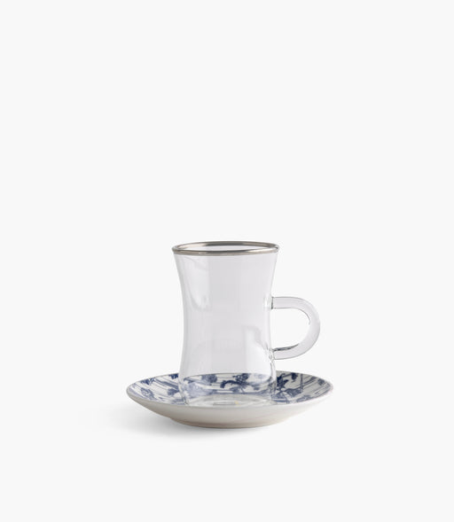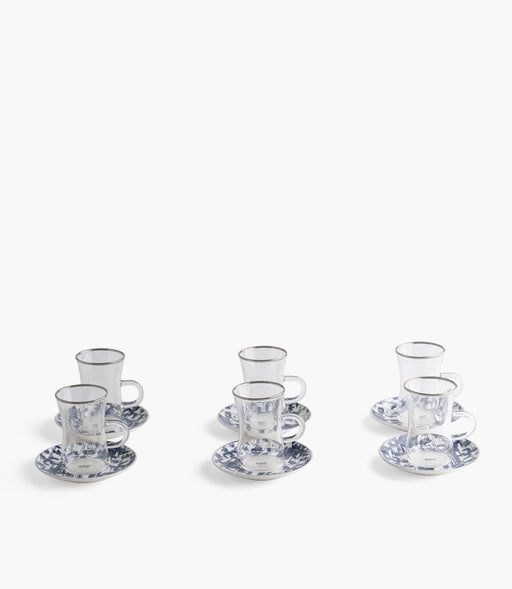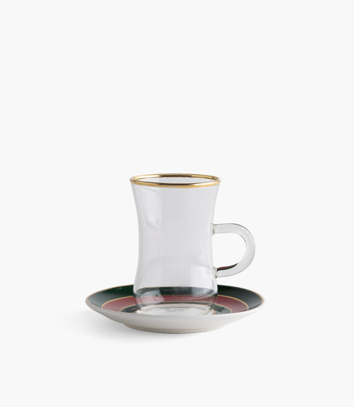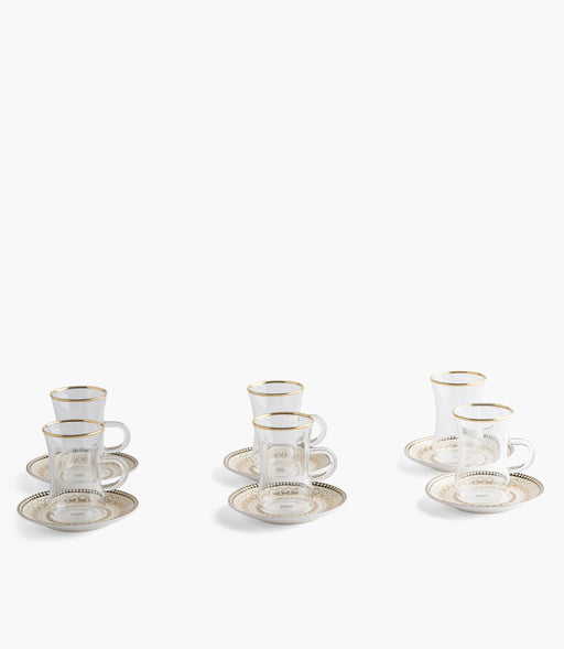 طقم أكواب شاي زجاجية شرق مع صحون خزف صيني - عدد 12