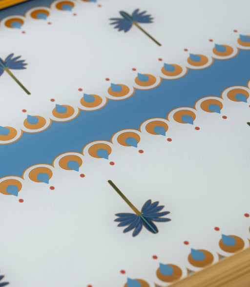 صينية بالمارا ألمنيوم برسوم نخيل زرقاء وإطار ذهبي
