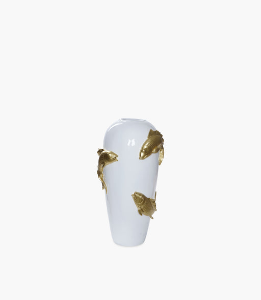 مزهرية تكستشرد تريجرز ريزن بيضاء مع أسماك كوي ذهبية