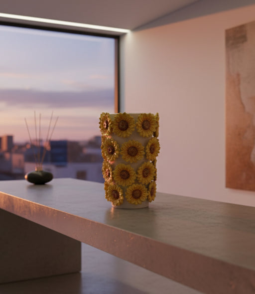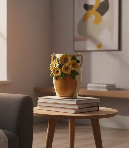 مزهرية صن فلاور سيراميك مُزيّنة بزهور دوار الشمس مع مقابض