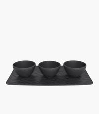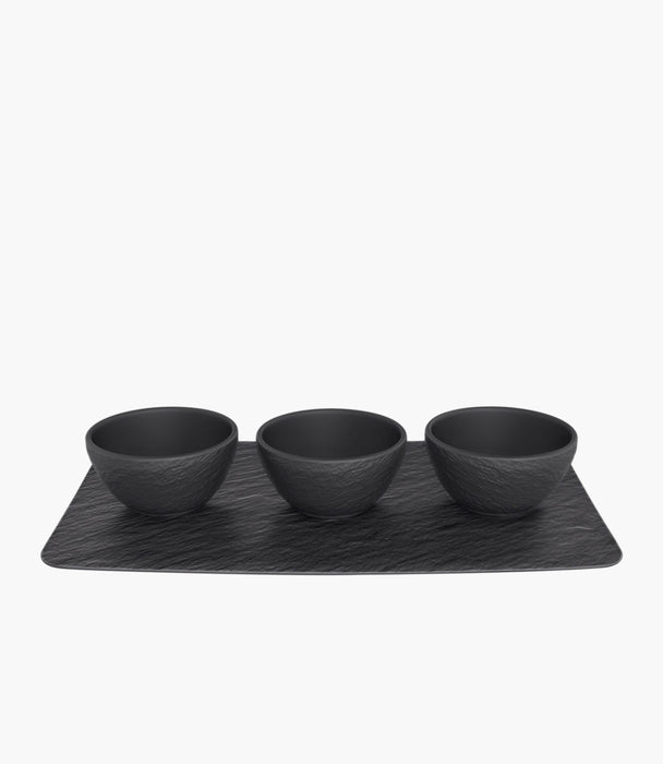 يعد "مانيوفاكتشر روك" شيئًا مميزًا للغاية: الاستخدام المبتكر للمواد، وأسطح البورسلين غير اللامعة واللون الأسود المعبّر يمنح المجموعة الأيقونية العصرية مظهرًا فريدًا وشعورًا استثنائيًا - يمكن دمجها مع مجموعة مانيوفاكتشر بأكملها للحصول على مظهر مثير. سواء كانت المقبلات أو المقرمشات الصغيرة أو صلصات التغميس اللذيذة - كل شيء يترك انطباعًا كبيرًا في طقم الأوعية المكون من ٤ قطع. دلل نفسك بتصميم مميز.