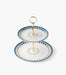 حامل كيك طبقتين بالمارا بورسلين بزخرفة زرقاء مع مقبض ذهبي