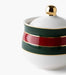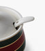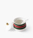سكّرية واسيم بورسلين بخطوط خضراء وحمراء مع ملعقة وغطاء