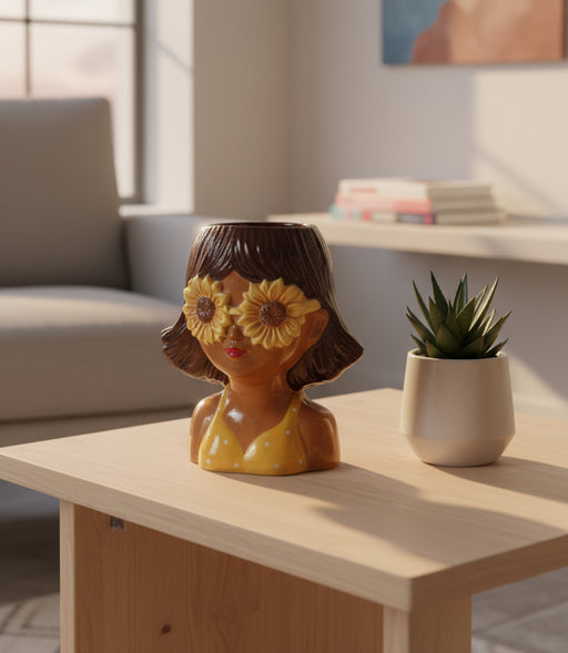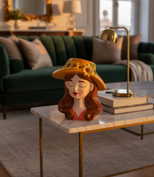 Original price SAR 145 - Original price SAR 145Original priceSAR 145SAR 145 - SAR 145Current price SAR 145| /in stockBring a touch of artistry and charm to your home décor with this ceramic lady vase featuring a sunflower-adorned hat. Whimsical yet refined, this h...