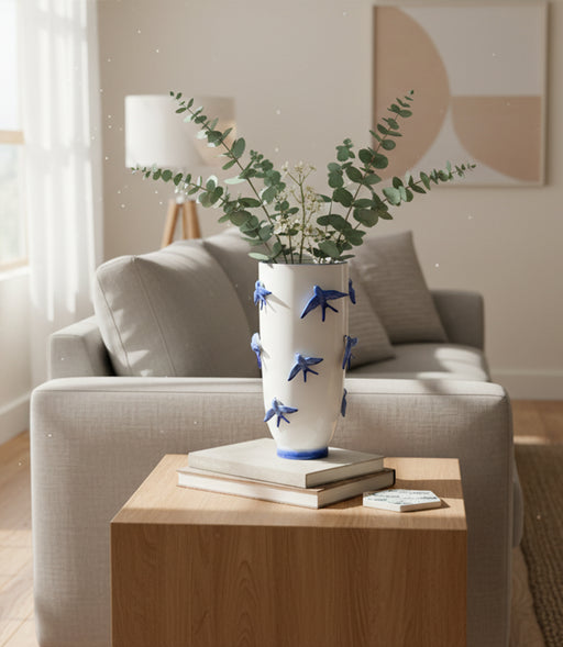 Original price SAR 375 - Original price SAR 375Original priceSAR 375SAR 375 - SAR 375Current price SAR 375| /in stockA symbol of joy and happiness as precious as its meaning, this vase celebrates blue birds through a striking 3D depiction. Suspended on glossy whit...