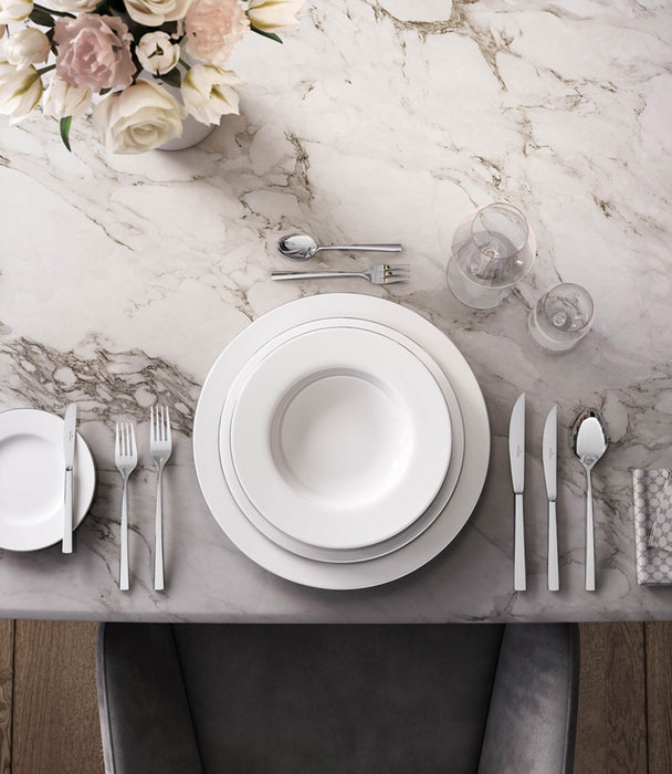 Villeroy & Boch offers the ultimate in elegance for every dining table. The timeless Anmut Platinum No-I and No.2 collections are characterised by a brilliant white and an elegant platinum decor. Clever starter soups or rich, hearty stews — this quality plate makes every soup a very special culinary experience. Make a confident style statement with this tableware.