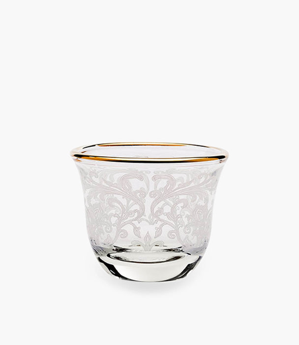 As part of the Embroidery collection, this set of six features a gleaming 24k gold rim, which highlights the delicate, embroidery-like patterns engraved into the surface. The combination of gold and intricate design creates an elegant and chic look, making these cups perfect for special occasions or simply as display pieces on your favorite shelf.