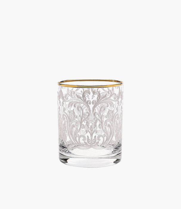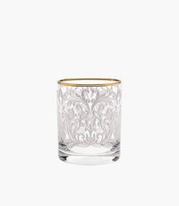 Featuring an intricate embroidery-inspired design and sleek gold-plated rim, these short drink glasses are perfect for serving your favorite beverages, like juice or water. Also ideal for chic gifting, they offer unmatched elegance with their masterful craftsmanship that brings a golden glow to your table.