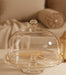 This high-quality glass footed plate from Combi's Equine Collection features a golden horse under a refined clear dome, creating a layered, luminous effect. The reflective surfaces catch light and movement, turning a simple object into a remarkabe table decor item.