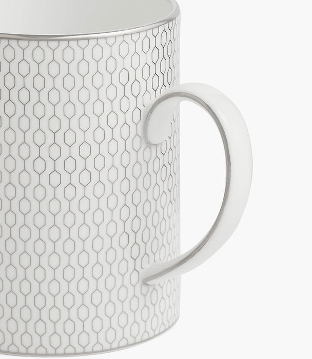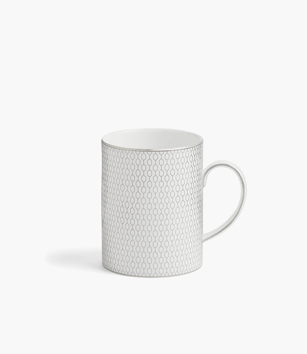 No mug enhances your favorite brew like this fine bone china piece from Wedgwood's Gio Platinum collection. Add a touch of sophistication to your mornings with this elegant white mug, accented in an eye-catching geometric pattern.