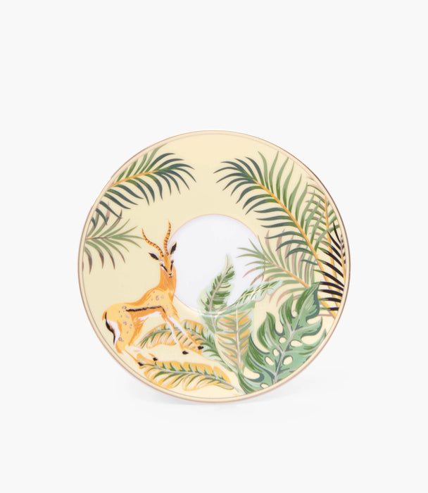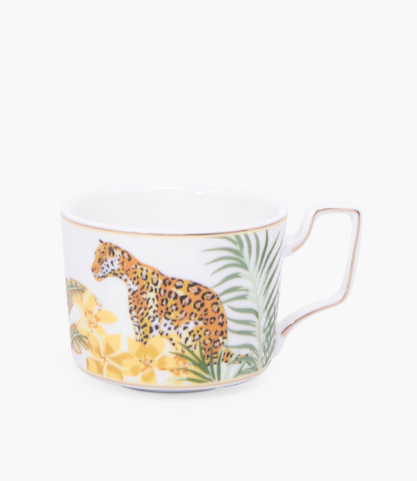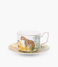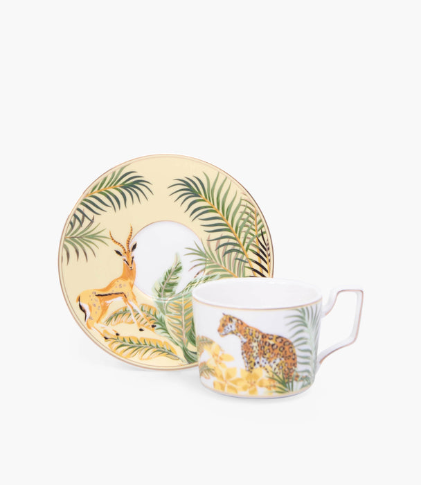 The cup showcases a wild leopard print, while the saucer shows a gazelle in a mix of vibrant and sandy colors that instantly charm the eyes. Perfectly sized at 220ml, the coffee cup is ideal for savoring your favourite hot beverages, such as espresso, cappuccino, and latte.