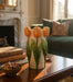 Part of the Tulip Collection, this medium-sized ceramic vase features vibrant yellow tulips that radiate gentle cheerfulness. It is the kind of decor that feels alive, refined, cheerful, and perfectly at home on a side table, shelf, or desk.