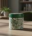 A decorative green porcelain jar from the Palette Collection with a fitted lid and intricate patterned surface. Its polished finish and structured form allow it to stand alone or complement other tabletop décor, offering a simple yet refined visual presence in living rooms, dining areas, or consoles.