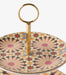 Turn serving into unique storytelling with this charming two-tier porcelain cake stand from the Pink Geometric Collection. The calm beige color and its eye-catching pattern blend classic elegance with contemporary style, making it a refined choice for any occasion or a striking addition to your home.