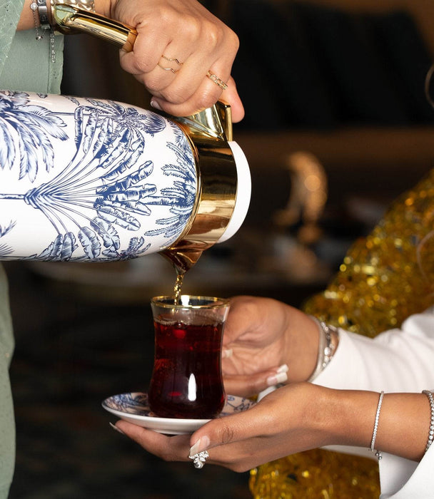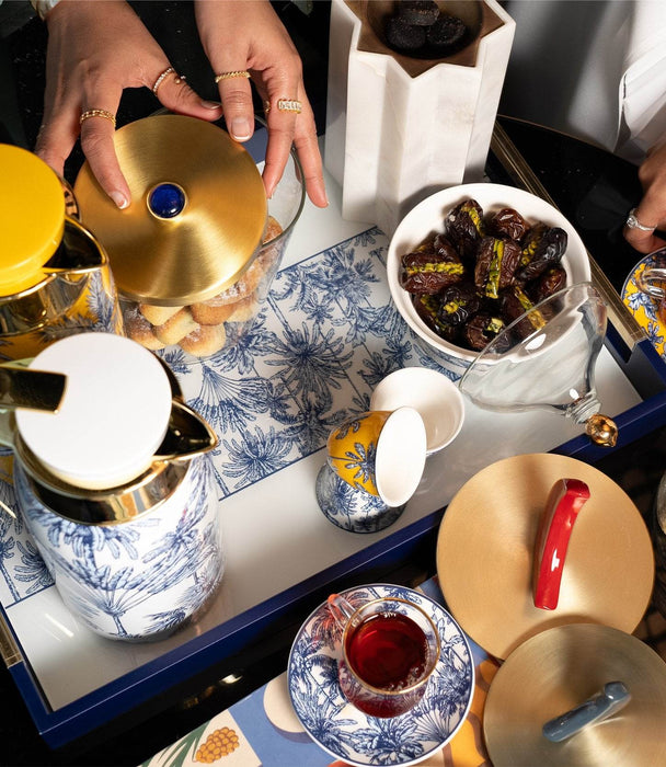 Bring a touch of serene beauty to your table with the Summer Palm Coffee Set. Crafted from premium porcelain, this elegant set features delicately designed coffee cups and a matching tray, adorned with a graceful white palm leaf pattern and subtle pearl accents. Inspired by tropical charm and timeless minimalism, the Summer Palm collection is perfect for everyday moments or stylish gatherings, offering a refreshing and sophisticated coffee experience.