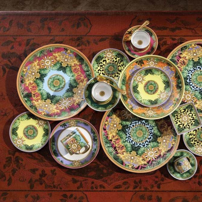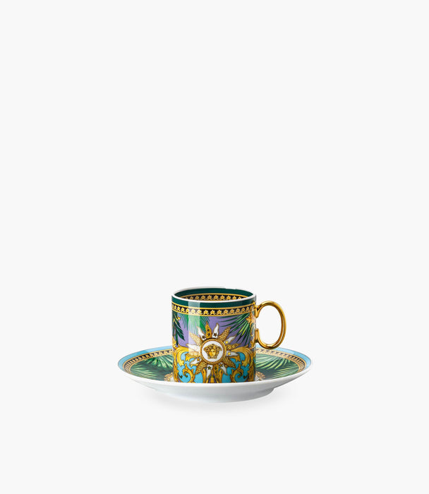 No cup & saucer combo can beat this Versace espresso set featuring a vibrant jungle print with opulent gold accents.