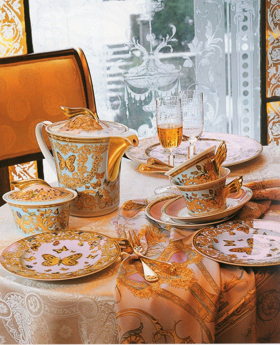 An enchanting garden in delicate pastel shades and an opulent diversity of blossoms, berries, insects and ornaments – all are combined by the Versace Milan studio to playfully symbolise a summer symphony. Exclusive designs, the fascination of glamorous epochs, elegance and refinement long gone by – this is the world of Versace.